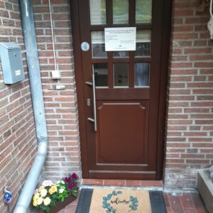 Folgen Sie einfach dem Weg zum Haus. An der Treppe des Haupthauses vorbei finden Sie den unteren Praxis-Eingang: