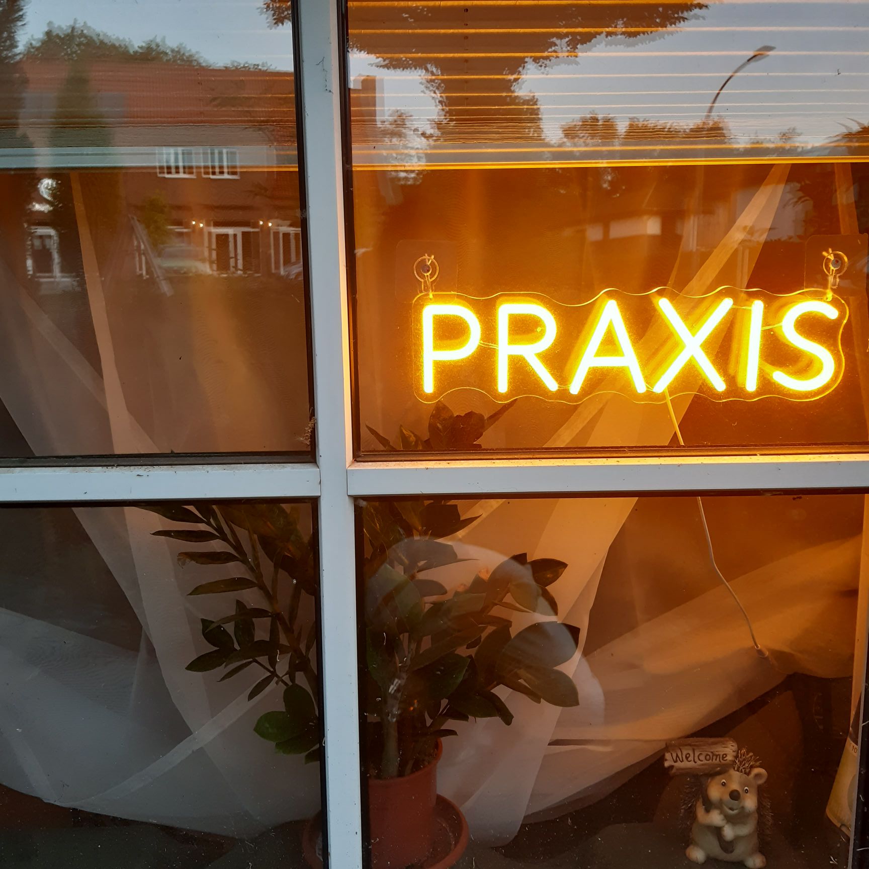 … ein beleuchtetes Fenster (des Wartezimmers), direkt hin zur Edendorfer Strasse.